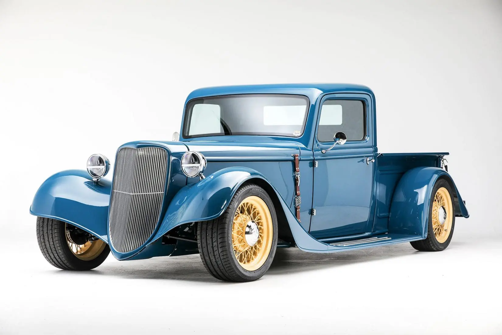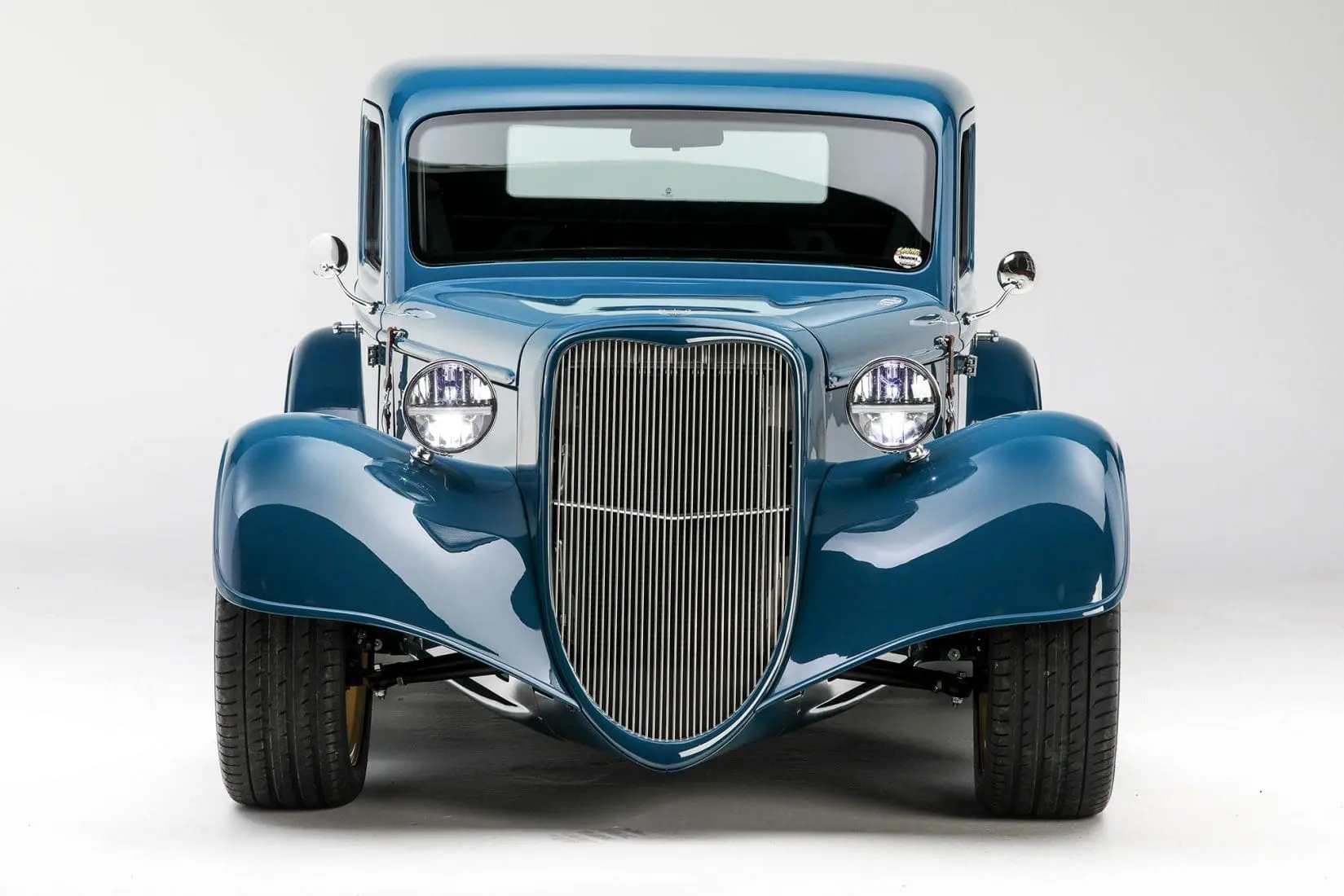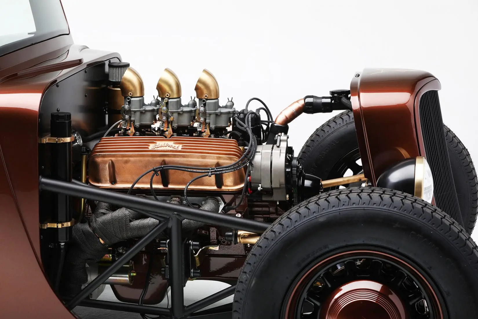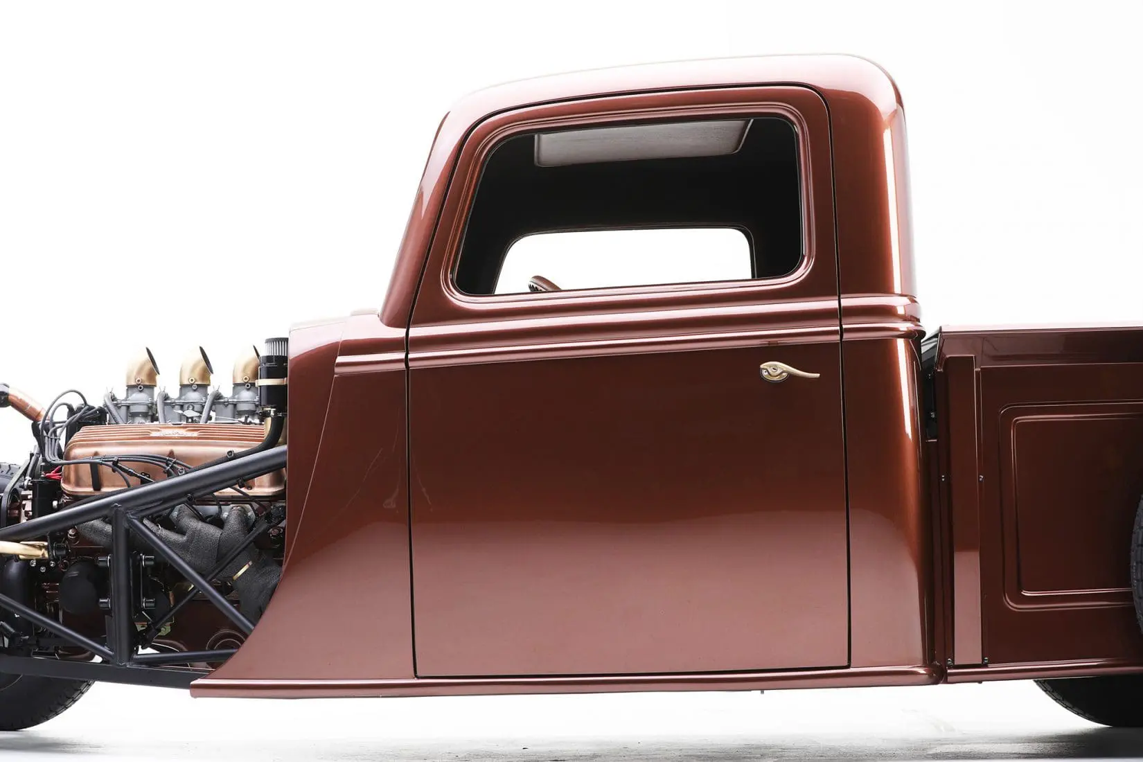 The ‘35 Hot Rod Truck keeps the core performance capability that we’re known for, but from the design goals on up, we added comfort and functionality goals. Our other cars are two passenger sports cars, and while this isn’t a four passenger, the bench seat means you and your girl can bring the dog or a kid. Standard power windows with door frame window surrounds mean air conditioning and heater/defroster make this truck modern-day comfortable.