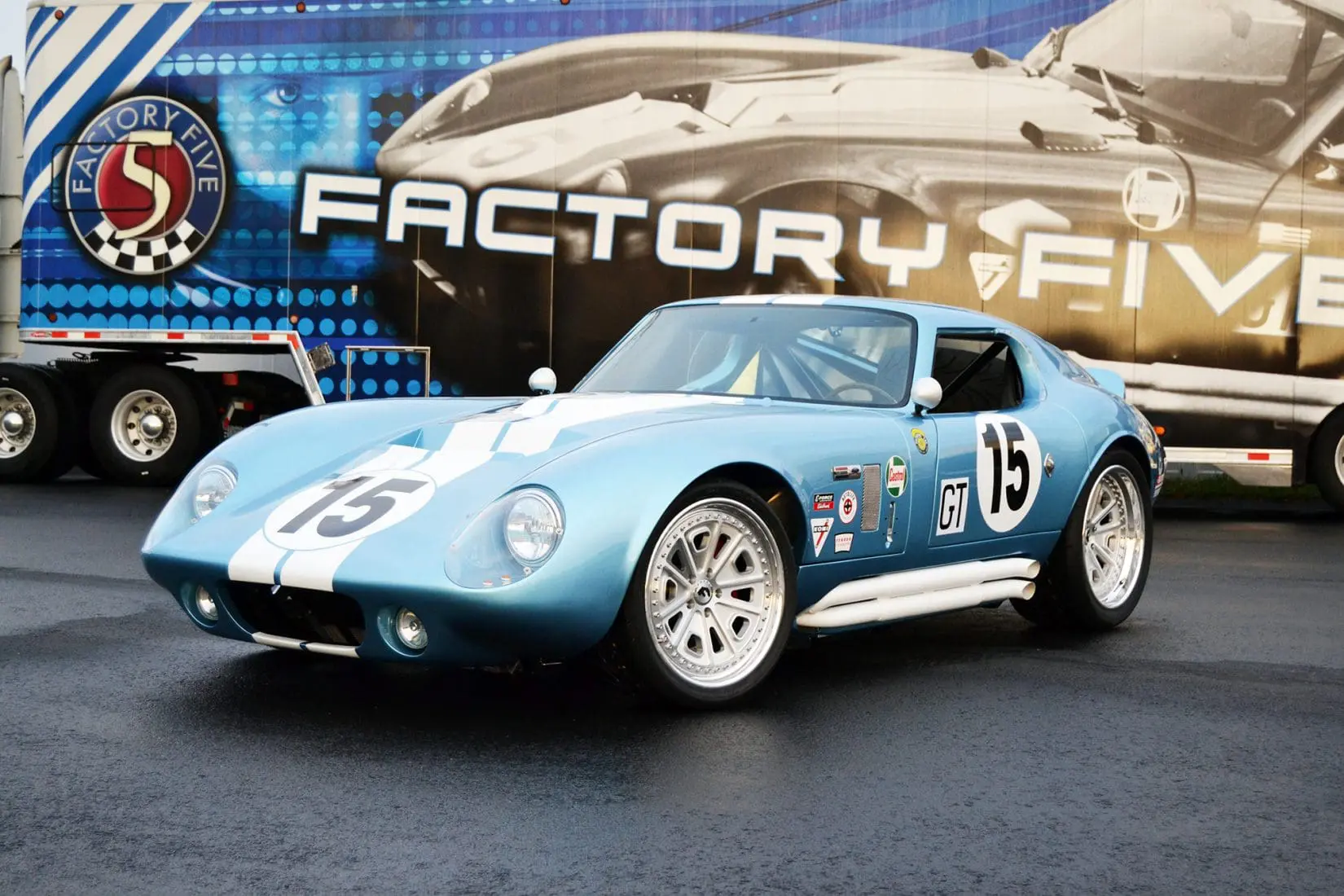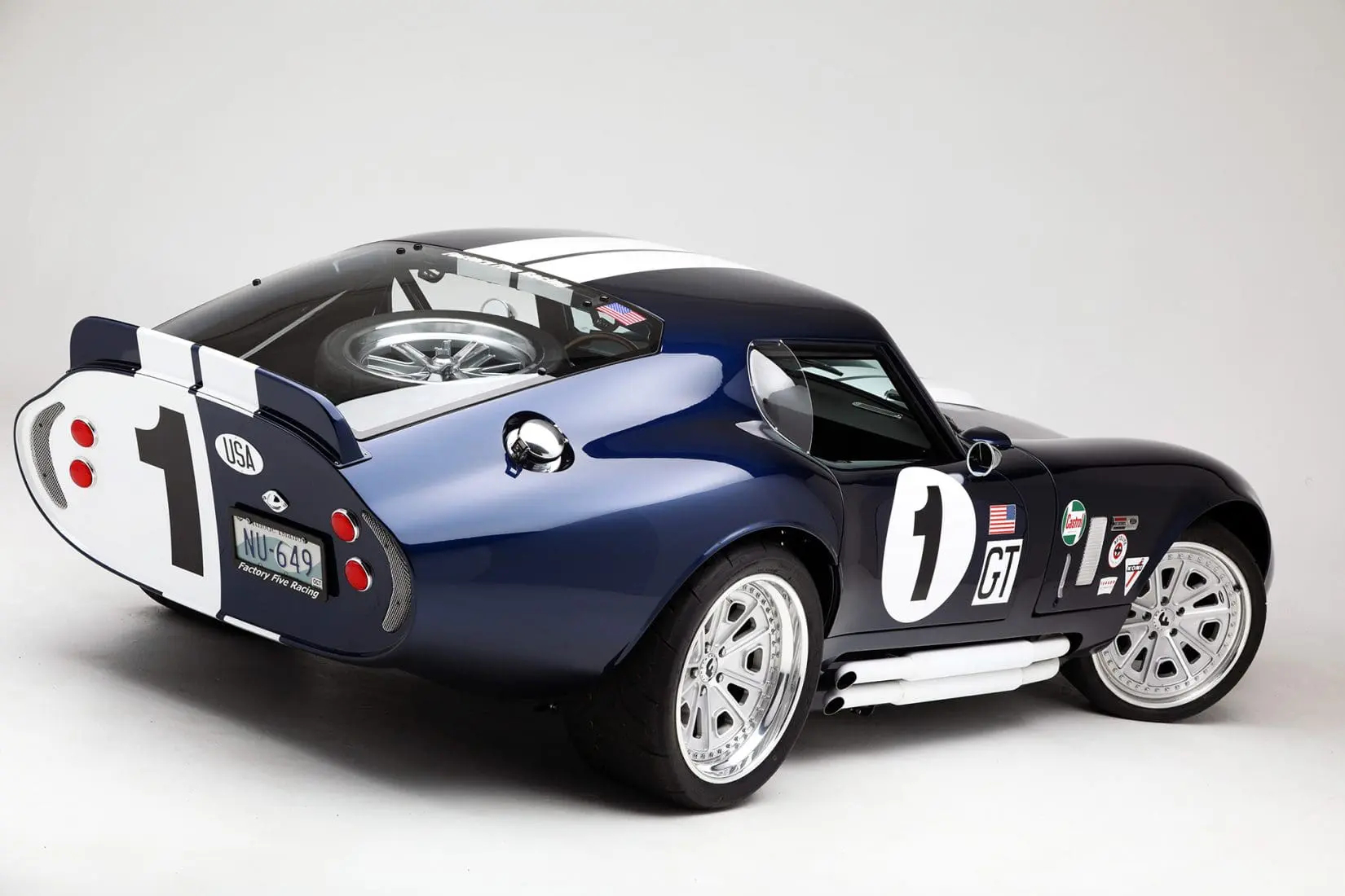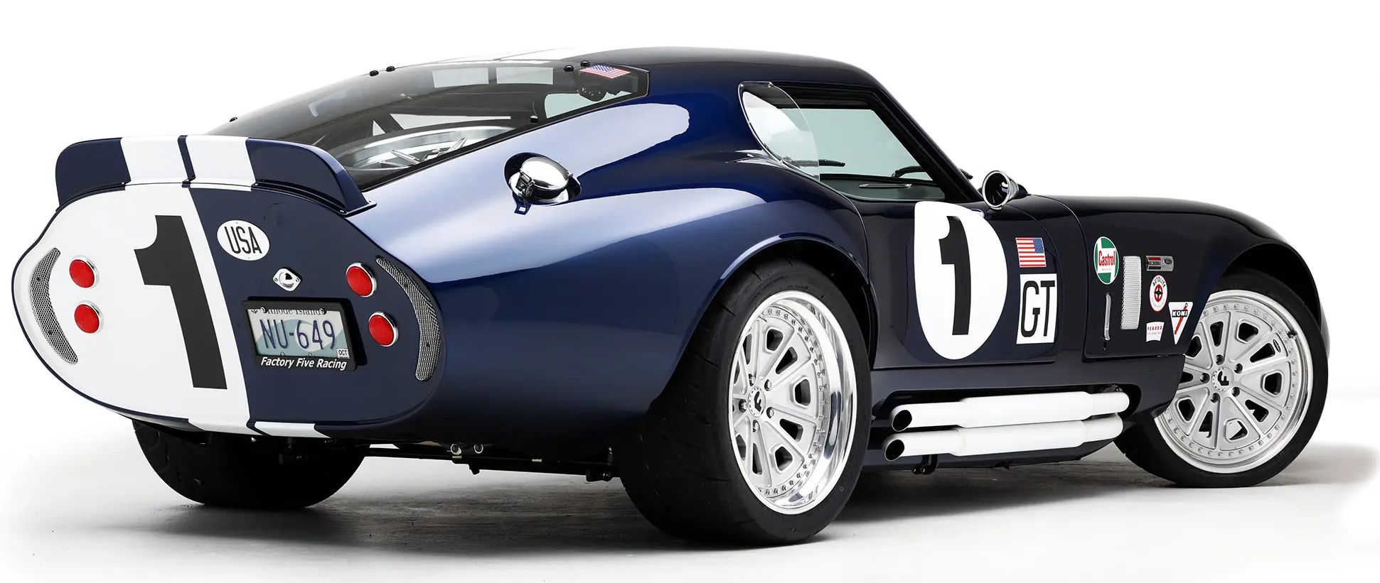 The Type 65 Coupe is designed to be an accurate replica of the original 1965 World Championship Daytona Coupe. The Factory Five Type 65 Coupe captures the look and feel of the original 200 mph GT cars, but as with all Factory Five designs, it is more reliable and comfortable.