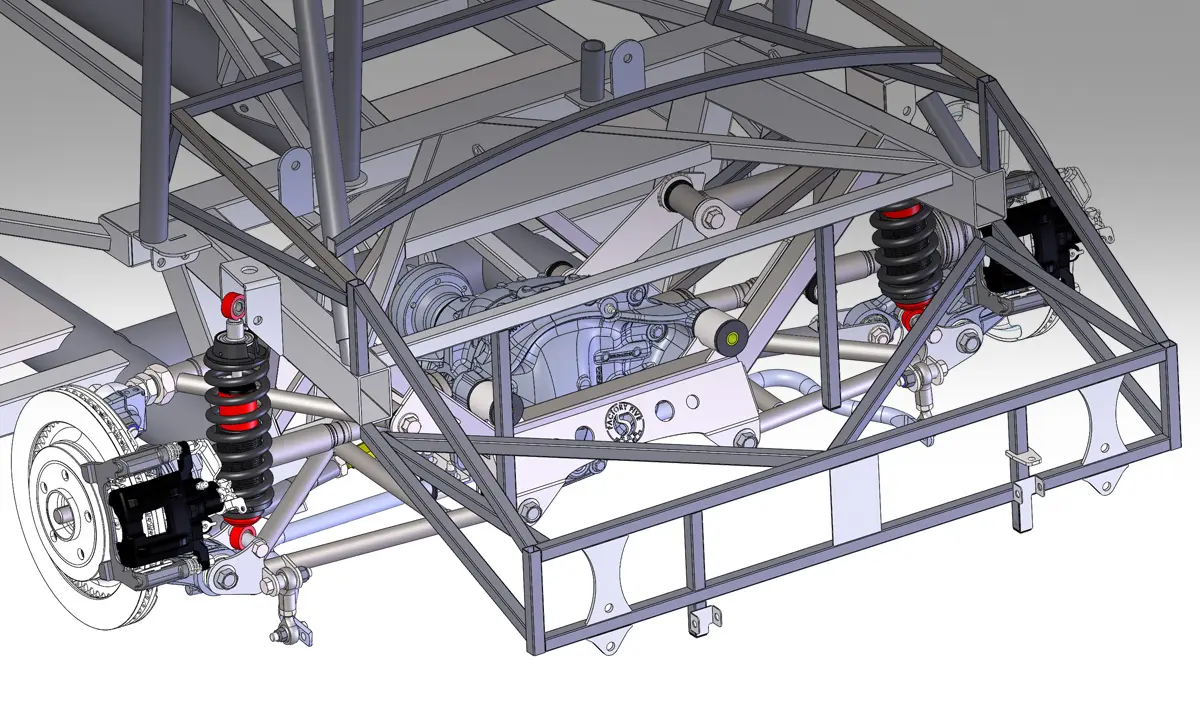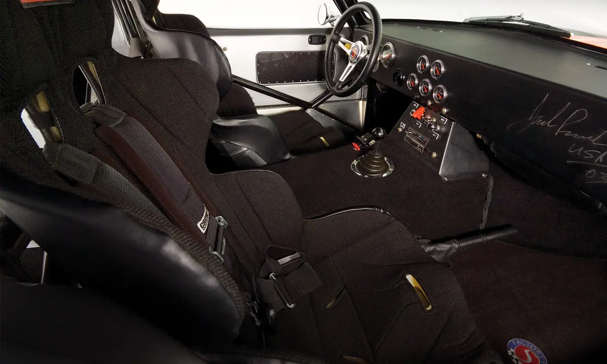 The Type 65 Coupe-R is based on the complete kit version of the Type 65 Coupe, but made for professional competition. The largest difference between the Gen 3 Coupe and the Gen 3 Coupe-R is that the Coupe-R comes with a competition cage chassis (powdercoated in white like all Factory Five competition version chassis).