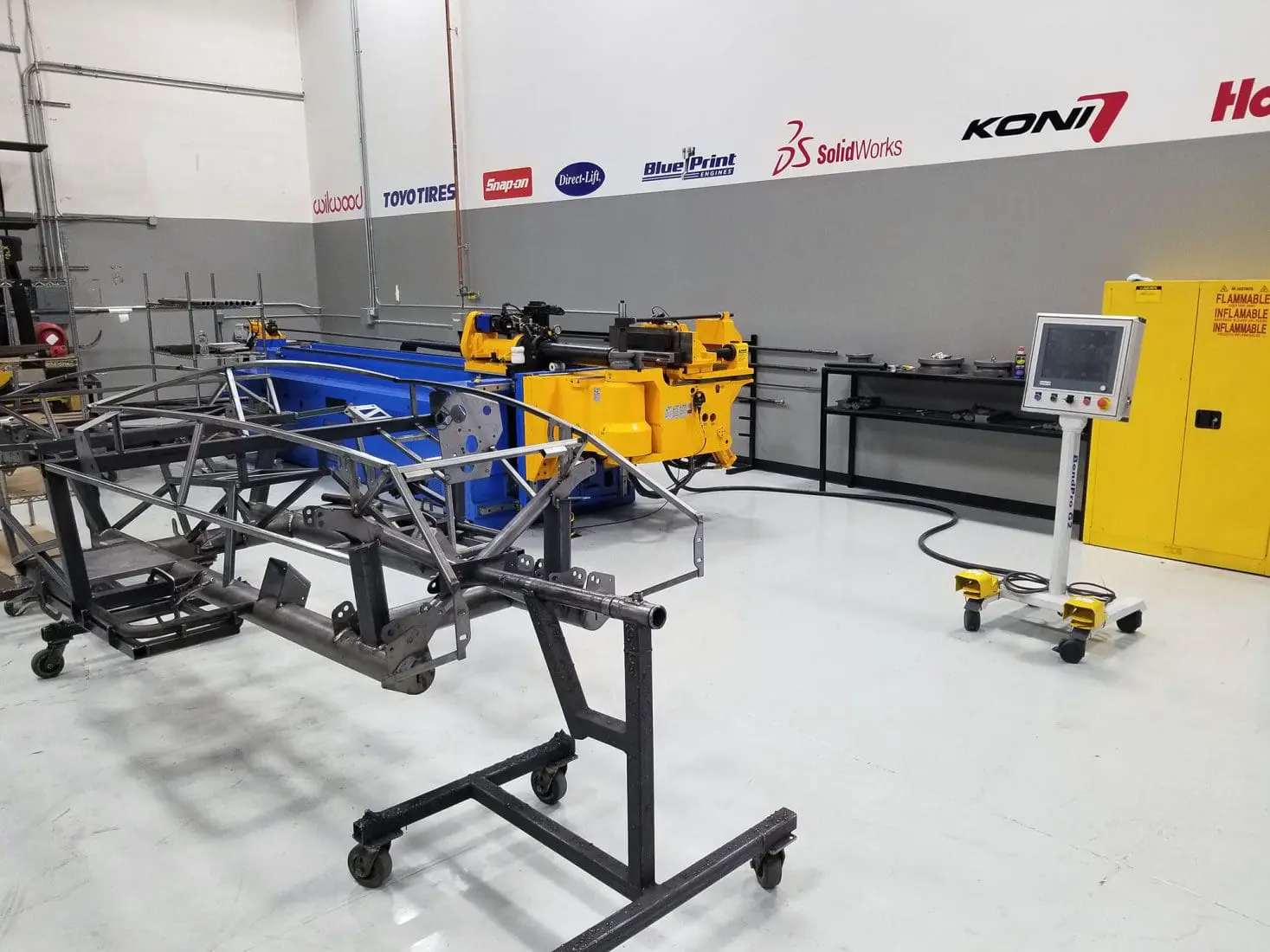 Computers and CNC technology are the foundations on which the Factory Five revolution was built. We design our chassis parts, production tooling, and body shapes with the latest CAD/CAM technology. We use SolidWorks® computer design software and HP hardware to design all of our cars. Computer-based technologies drive everything we do, including design, pre-production quality assurance, pilot production, product bill of materials and packlists, manufacturing cut lists, CNC laser cutting, robot trimming, and welding.