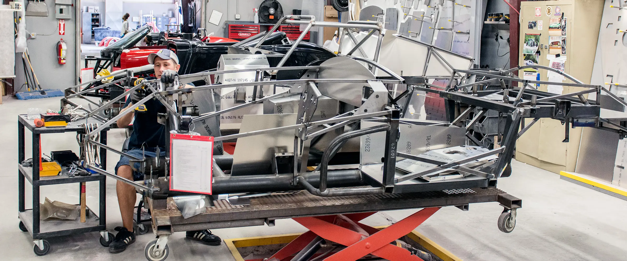 While our talented engineering staff uses advanced computer designs up front, our manufacturing team finishes the job by using the right materials, tools and training to build a better part. Not only does Factory Five lead the component car industry in engineering technology, but we set the bar just as high in responsible, quality manufacturing. The end result of all this work is that this most American of cars is made by American craftsmen using the right tools and the right materials, the right way.